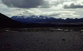 Kverkfjöll (Icelandic pronunciation: [ˈkʰvɛr̥kˌfjœtl̥] ⓘ; 1,764 m) is a mountain range situated on the north-eastern border of the glacier Vatnajökull in Iceland. With the glacier Kverkjökull, it is between the Vatnajökull glacier and the Dyngjufjöll mountains. The mountains are active volcanoes. Especially around 1720, they saw frequent eruptions and glacier runs.