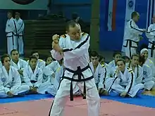 Hwang simultaneously served as special assistant to General Choi, official spokesman of the ITF, chairman of the ITF promotion and merger committees, and Secretary General of the ITF.[1][4][11][12] 1997 was a monumental year for ITF and General Choi as he promoted three men to 9th degree that year with Grand Master Rhee Ki-ha (UK-9-1) promoted in July 1997 followed by Grand Master Charles Sereff (A-9-1) and Grand Master Hwang Kwang-sung (K-9-1) in December 1997.[4] He was one of only a handful of men promoted to 9th Dan by General Choi.[5]