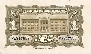 - 1932: It was restructured as the Kwangtung Provincial Bank.[1][2]