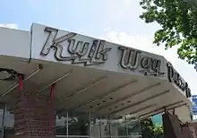 The original Kwik Way fast food restaurant chain, based in Oakland, California, began at 63rd & E 14th in 1952. Owned by partners Lehman & Mahoney, they followed with a Kwik Way at 22nd & Telegraph, in 1954, followed with a 3rd restaurant, the Grand Lake Drive In, at 500 Lake Park in 1956. All three restaurants were identical in operation in their heyday, and run under common ownership. When partners Lehman & Mahoney retired from active management, each restaurant sold to the then current managers, thereby forever ending the famous Oakland chain. Only one location remains: The Grand Lake Drive In became Kwik Way, a revival of name only. That restaurant near the Grand Lake Theater was later owned by Alex and Charles Hahn, and has been cleaned up and relaunched by Gary Rizzo.[1] That venture closed three years later. In September 2019, the Ecumenical Association for Housing announced plans to develop 50 units of affordable housing on the site, which it purchased the year before.[2]