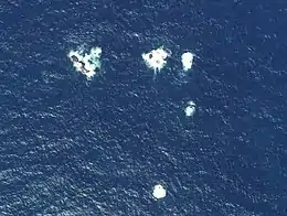 Kyūroku-jima was charted in 1786 by merchants, though the area had been known as a fishing ground since the sixteenth century when a fisherman named Kyūroku crashed on the islands, giving them their name.[5] The islets were first observed by Europeans in 1855, when the crew of HMS Bittern spotted them covered in seals. The crew named the islets the Bittern Rocks, a name that stuck with Western sources at least until the beginning of the twentieth century.[6]
