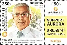 - ↑ "New stamp features 2018 Aurora Prize Laureate Kyaw Hla Aung". news.am. 16 October 2019. Retrieved 15 February 2020.