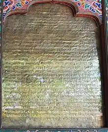 The lhakhang was built to subdue a demoness (Sin Mo) and all of the 108 temples were said to have been built on the same day to subjugate her and ensure the propagation of Buddhism. It is located north of Paro about five minute's drive from town. The story of the foundation of these temples by the Tibetan King is so well known to the Bhutanese that, according to historian Karma Phuntsho, Bhutan's history effectively begins with this event.[1] Kyichu Lhakhang is believed to have been a smaller structure when the Tibetan King Songtsen Gampo erected this sacred building in the year 659, but a number of Buddhist saints and gurus added to the site until it became the spectacular temple it is today. Kyichu Lhakhang is situated between Tenchen Choeling nunnery, Taktsang and Sangchoekhor.