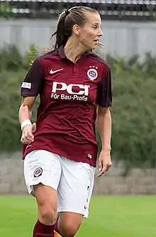 In May 2018, Strom signed a one-year extension ahead of the 2018–19 season.[14] The team defended both the league and cup as Strom was voted as Sparta's player of the season for the second consecutive season.[15][16] During the 2019 cup final, Strom scored Sparta's only goal in a 1–1 draw with rivals Slavia Prague but failed to convert her penalty in the ensuing penalty shoot-out.[17] In June 2019, she signed another one-year contract with Sparta Prague.[18]
