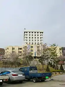 Founded in 1946 as Kookmin College in Seoul, the tumultuous Korean War years created a situation in which it was more advantageous to move south than to stay in the Seoul area.[2] In 1952 Kookmin College was rechristened Haein College[3] and then in 1956 the college relocated to Korea's southern coast and has been in the city of Masan since that time. In 1961 the institution was renamed Masan College.