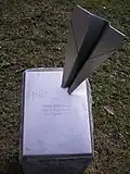 On 8 August 1993 a JAS 39 Gripen fighter aircraft crashed on Långholmen during a display at the Stockholm Water Festival. The plane caught fire on impact, but the fire was soon put out. The pilot successfully ejected, and despite large crowds of spectators, only one person was injured.[6] A sculpture in stainless steel by Thomas Qvarsebo, depicting a paper plane with its nose drilled into the ground, was placed on the spot in 1994.[7]