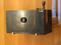 This device is able to both shoot and project film. It uses a sensitive film without perforations and all principles required by cinematography are available: most notably, the film's jerky movement through the camera's gate is synchronized with the shutter. Two of these devices are conserved in the French Conservatoire National des Arts et Métiers.