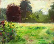 In the 1960s, he returned to the daily grind, no doubt more out of necessity than by choice. His friend Sudreau, the Secretary of State, gave him a room in the castle of Bonhommes in l'Isle-Adam forest. The castle grounds, with its diverse trees, its ponds and its changing aspects tracking the changing of the seasons, offered to Gard a multitude of subjects. Since he could only make short trips there for a day or two, he chose to make drafts. He tried to seize the effects of light, wind, fog, snow, rain, playing in the trees, the meadows, the water or the sky. The light is expressed in prominent fluid brushstrokes, which do not seek to flatter the layman's eye. For the expert, these landscapes are a collection of erudite and delicious harmonies which sing nature.
