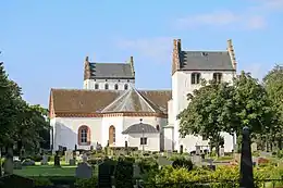 Löderup Church (Swedish: Löderups kyrka) is a medieval church in Löderup, Ystad Municipality, in the province of Skåne, Sweden. Dating from the 12th century, it has subsequently been expanded and rebuilt, not least under the guidance of architect Carl Georg Brunius in the 1860s. The church contains several old furnishings, including an unusual 12th-century baptismal font.
