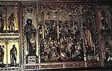 The Late Gothic altarpiece is Southern Jutlands largest and comprises a middle panel plus two stationary and two moveable panels resting on a predella with sculptures and paintings.