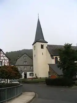 - Saint Maximin's Catholic Church (Kirche St. Maximin), Kirchplatz 5 – Baroque aisleless church, marked 1753, Romanesque west tower; outside cross, wayside cross, two grave crosses with tomb slabs; Gothic Revival graveyard cross, 19th century