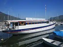 In 1976, Alain Prud'homme bought the ferry Hautecombe and used it as headquarters for his sailing school. The ship took back its original name and was moored at the Grand Port of Aix-les-Bains, near the docks for the company's ships . It was later converted into a maritime store. On February 8, 2015, it dragged its anchor and a part of its gangway was snatched due to strong winds.[2] The ship was not damaged and the gangway was repaired some days later.