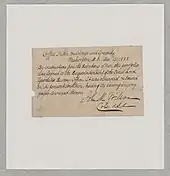 The library has in its collections a "Dotted line map of Washington, D.C., 1791" that lacks an author's name.[59][25] The library's notes state that this document is a "Ms. survey map drawn by P.C. L'Enfant" and is "accompanied by positive and negative photocopies of L'Enfant's letter to George Washington, Aug. 19, 1791, the original in the L'Enfant papers".[25] (L'Enfant's papers include an August 19, 1791, letter to President Washington that contains an "annexed map of dotted lines".[15][59]) The named plan would therefore be the one that L'Enfant annexed to his June 22, 1791 letter to the president.[12][59] Comparisons of Andrew Ellicott's February 1792 revision of L'Enfant's Plan with the two manuscript maps suggest that Ellicott had based his revision (which printers distributed soon after its preparation) on the August 1791 "dotted line map", rather than in June 1791 manuscript.[59]