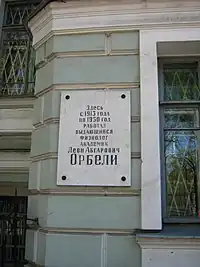 Leon Abgarovich Orbeli (Armenian: Լևոն Աբգարի Օրբելի, Levon Abgari Orbeli; Russian: Леон Абгарович Орбели, Levon Abgarovich Orbeli; 7 July [O.S. 25 June] 1882 – 9 December 1958) was an Armenian physiologist active in the Russian SFSR. He was a member of the Academy of Sciences of the Soviet Union and Armenian SSR (the latter was founded by his brother Joseph Orbeli). Leon Orbeli became director of the Institute of Physiology in 1950.