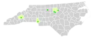 Map of North Carolina counties and cities that offer domestic partner benefits either county-wide or in particular cities.