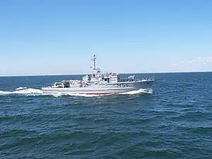 LKL Kursis (M54) is a minehunter of the Lithuanian Naval Force. Built in West Germany in 1958 as Marburg (M1080), a Lindau-class (or Type 320) minesweeper for the German Navy, she was upgraded to a Type 331 minehunter in the 1970s. Germany donated Marburg in 2001 to the Lithuanian Naval Force, which renamed the ship Kursis. The vessel augmented the Squadron of Mine-hunters, which had been established in 1999 with the similar donation of sister ship Koblenz, which became Sūduvis (M52).