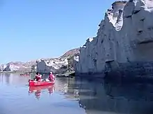 The site of LaBarge Rock is not easy to visit. It is in the White Cliffs section of the Missouri River. Back from each side of the river are sharply eroded badlands, part of the Missouri Breaks, that are so rough that roads through the breaks down to the river (and thus to specific sites along the river) are primitive and thinly distributed across a large area. However, opposite the site of LaBarge Rock, there is a campground that exists for boaters floating the river (referred to as Eagle Creek Campground or sometimes LaBarge Campground) that can be reached from the north and east bank by primitive dirt road, but this road crosses private land and access over that private land may be restricted. The most common way to visit the White Cliffs area, including LaBarge Rock is to float this section of the Missouri River. The White Cliffs section of the river may be boated in one long day trip, from Coal Banks Landing (BLM mile-mark 41) to Judith Landing (BLM mile-mark 88) if a motorized boat is utilized,[17] or during a more relaxed float-and-paddle river expedition lasting several days. This float trip has become increasingly popular in recent years.