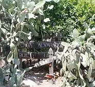 The Casa Alvarado is located on a portion of the 22,000-acre (8,900 ha) Rancho San Jose granted to Ygnacio Palomares and Ricardo Vejas in 1837. In 1840, Palomares invited his close friend, Ygnacio Alvarado, to live on the ranch and gave him a plot of land near Palomares' own home, La Casa Primera de Rancho San Jose.[2] The land was given to Alvarado with the stipulation that Alvarado would build a chapel in his home to be used for church services when padres visited from the Mission San Gabriel Arcángel.[2][3][4] The large 18-foot (5.5 m) by 42-foot (13 m) living room (or "sala") of the Casa Alvarado was used for church services for 45 years.[3][5][6][7] The Alvarado's adobe living room was also the site of the first public school classes in the Pomona Valley, starting in 1870 or 1871.[3][4][5][6][7][8]