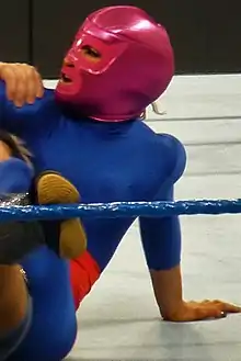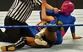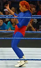 On the January 3, 2017 episode of SmackDown Live, Lynch defeated La Luchadora in a singles match.[4] Following the match, the character was unmasked and it was revealed that Bliss portrayed the character during the match before the evil Deonna Purrazzo appeared as a second Luchadora and attacked Lynch with help of Alexa.[5][6] On the January 17, 2017 episode of SmackDown Live, the evil La Luchadora returned during a steel cage match for the SmackDown Women's Championship between Bliss and Lynch, where she once again distracted and attacked Lynch, leading to Bliss retaining.[7] After the match it was revealed that the returning Mickie James was under La Luchadora persona and officially allied with Bliss, making it the last appearance for the La Luchadora gimmick.[8][9]