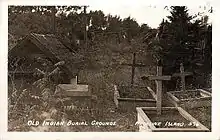 The mission was dedicated on August 9, 1835, under the name St. Joseph's Chapel. It was made of logs, and was located about 100 feet south of the current graveyard.[2] The graveyard was consecrated the following year as the official burial place of the Catholic mission. However, earlier burials probably already existed at this location, as later archaeological studies have revealed several earlier ancient graves in the vicinity.[3]