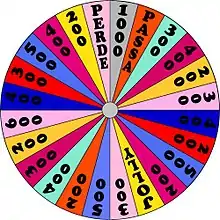 When the show was on 'Pentatlon' using Italian lira as its currency, the 15-wedge wheel configuration ran from Lit. 100,000 to Lit. 1,000,000. On the Odeon version, the number of wedges increased to 24, and amounts ranged from Lit. 50,000 to Lit. 1,000,000. In round 3, the amounts increased with Lit. 100,000 as the smallest and Lit. 3,000,000 as the biggest.[2] In 1989, Lit. 1,000,000, Lit. 1,300,000, and Lit. 2,000,000 were the top amounts of the first three rounds. The following year, the smallest amount of Lit. 200,000 increased to Lit. 300,000, and Lit. 1,000,000 became the top amount for the first two rounds. This changed from €150 to €500 (€200 to €1,000 in round 3) when Italy adopted the euro in 2002. From 1999 to 2001, however, a blue band was inserted at the wheel's edge showing the euro value equivalent to each corresponding wedge. For example, a wedge worth Lit. 300,000 had a blue band noting that the same wedge was worth €154.94. In 2001, euro and lira values swapped positions. By 2002, the band was removed, and the euro values were changed again, ranging from €50 to €300 (€100 to €600 in round 3).[3]