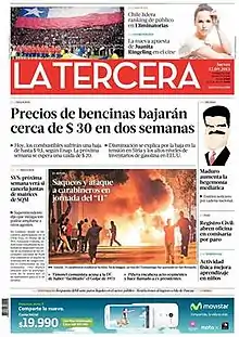 ![]() Front page of La Tercera's 12 September 2013 edition. | |