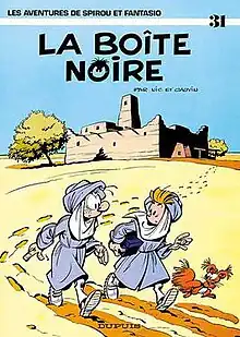 La boîte noire, by Nic (Broca) & Cauvin, is the thirty-first album of the Spirou et Fantasio series, and the second of the authors. The story was initially serialised in Spirou magazine, before released as a hardcover album in 1983.