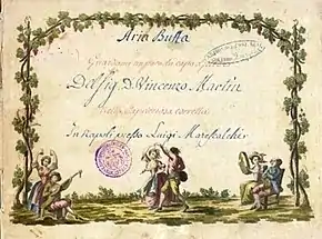 Cover of the score for Ciprigna's Act 1 aria "Guardami un poco da capo a piedi" (Look at me a bit from head to toe), published in Naples c. 1798