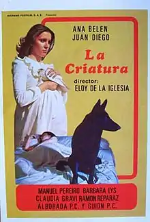 The creature (Spanish: La criatura) is a 1977 drama film, directed by Eloy de la Iglesia. The plot follows a respectable bourgeois housewife who chooses the love for her black German Shepherd over her relationship with her husband. La criatura is notable, like Walerian Borowczyk's La Bête (1975) and Nagisa Oshima's Max, Mon Amour (1986), for openly involving zoophilia, then a novelty in Spanish Cinema.[1]