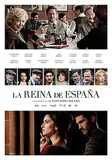 The Queen of Spain (Spanish: La reina de España) is a 2016 Spanish comedy-drama film written and directed by Fernando Trueba. Starring Penélope Cruz, Antonio Resines, Neus Asensi, Ana Belén, Javier Cámara, Chino Darín, Loles León, Arturo Ripstein, Jorge Sanz, Rosa Maria Sardà, Santiago Segura, Clive Revill, Cary Elwes and Mandy Patinkin. It was shown in the Berlinale Special section of the 67th Berlin International Film Festival.[2]