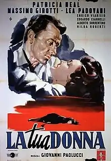 La tua donna (i.e. "Your Woman") is a 1954 Italian melodrama film co-written and directed by Giovanni Paolucci and starring Patricia Neal, Massimo Girotti and Lea Padovani.[1][2][3] It grossed 63 million lire at the Italian box office.[1]