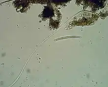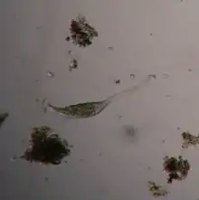 Lacrymaria olor is a species of ciliates, typically 100 micrometres (0.10 mm) long, that is found in freshwater ponds. Its name means "swan tear" in Latin, and refers to its general shape: namely, a teardrop-shaped cell with a small "head" at the end of a long slender "neck". The protist is notable for its ability to extend the anterior end of the cell up to 7 times its body length, and manipulate in many directions — even around obstacles — in order to capture its food.[1] For that reason it is a popular subject for amateur microscopists. The classification has been attributed to Müller (1786).[2]