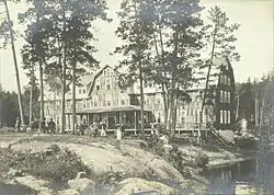 The Lady Evelyn Hotel was a hotel on the northeast point of Deer Island in the North Arm of Lake Temagami in Temagami, Ontario, Canada.[1][2] The 3+1⁄2-story, 108-bed building was the largest of three hotels operated on Lake Temagami by the Temagami Steamboat and Hotel Company.[1][3] The company established the Lady Evelyn Hotel in 1904 under the management of Dan O'Connor and the financial backing of W. G. Gooderham and Alex and David Faskin.[1][2] Supplies and passengers to the Lady Evelyn Hotel were delivered by steamboat (e.g. Belle of Temagami) from the lakeside landing at the Temagami station.[2]