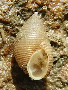 | Laemodonta monilifera, live animal withdrawn into shell | |