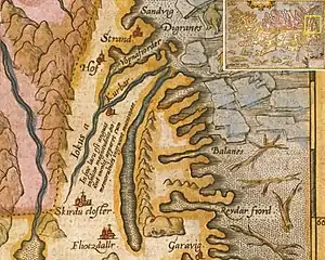 A description of a supposed river-serpent that dwelled in Lagarfljót river occurs in De mirabilibus Islandiae (Chapter VI), written by the Bishop Gísli Oddsson of Skálholt (d. 1638). The serpent was referred to as a strandvorm in the Norwegian language.[lower-alpha 2] Opinions differed on how many humps (or rather "bends, curvatures"[lower-alpha 3]) it had, varyingly given as one, two, or three. It was blamed for making the river overflow and causing the ground and houses to shake.[19][20]