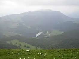 Lake seen from country road SP3 with peak Corno della Paura in the background.