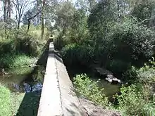 The surviving built elements of the system comprise a concrete slab and foundations for the pumping station above the eastern bank of Lagoon Creek, associated iron pipes and a low concrete weir running from bank to bank some 300 metres (980 ft) downstream.[1]