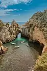 Lagos is one of the most visited cities in the Algarve and Portugal, due to its variety of tourist-friendly beaches, rock formations (Ponta da Piedade), bars, restaurants and hotels, renowned for its vibrant summer nightlife and parties.[5] Yet, Lagos is also a historic centre of the Portuguese Age of Discovery, frequent home of Henry the Navigator, historical shipyard and, at one time, centre of the European slave trade.[6] In 2012, travel website TripAdvisor, classified Lagos as the number one travel destination, on a list of "15 destinations on the rise" worldwide.[7]
