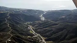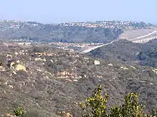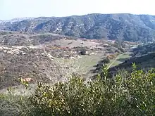 Laguna Canyon, also called Cañada de las Lagunas (Spanish for 'Canyon of the Lakes'),[1][2] is a gorge that cuts through the San Joaquin Hills in southern Orange County, California, in the United States, directly south of the city of Irvine. The canyon runs from northeast to southwest, and is drained on the north side by tributaries of San Diego Creek and on the south by Laguna Canyon Creek. It is deeper and more rugged on the southwestern end near Laguna Beach.