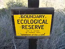 Sign denoting the boundary of Laguna Coast Wilderness, on the center reach of Willow Canyon Trail