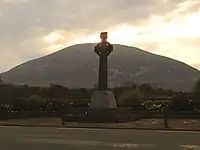 ![]() ![]() Top: A section of the Titanic Memorial Park. Bottom: A Celtic Cross commemorating Father Andrew Conroy who was hanged for taking part in the 1798 United Irishmen Rebellion. In the background, the mountain known as Nephin | |