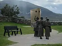 Addergoole parish suffered the largest proportionate loss for any locality probably in the world when the RMS Titanic sank in 1912. The 'Addergoole Fourteen' boarded the ship at Queenstown (Cobh).[8] Three survived the disaster.[9] There is a plaque in St Patrick's Church, Lahardane to the memory of the fourteen, as well as a memorial garden filled with sculptures to honour their memory.[10]
