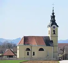 The local church is dedicated to Saint Florian[6] and belongs to the Parish of Cerklje na Gorenjskem.[7] It dates from the 17th century and was renovated in 1830.[3]