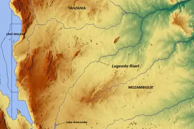 Lake Amaramba shown feeding into the Lugenda River at the bottom