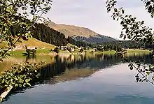 Lake Davos (German: Davosersee) is a small natural lake at Davos, Switzerland. Its surface area is 0.59 km² and the maximum depth is 54 m. Fed by sources of the Rhine, Flüelabach and Totalpbach, among other mountain creeks, the lake is used as a hydropower reservoir; its water no longer flows to the river Landwasser but is channeled into the river Landquart at Klosters.