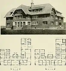 - ↑ Carrington, Thomas Spees (1914). Tuberculosis hospital and sanatorium construction, third edition, New York. Resorts Publisher. pp. 80 Photos and floor lay out.