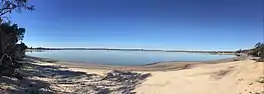 Fauna around the lake include 8 species of frogs, 42 of reptiles and 26 mammals.[11] The lake is rich in bird life, with 95 species of bird recorded around the lake, including the endangered hooded plover and freckled duck.[1] Other species seen around the lake are chestnut teal, banded stilt, common sandpiper, red-necked avocet, red-kneed dotterel,[12] common greenshank, wood sandpiper and black-winged stilt.[13]