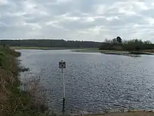 Lake Lafayette is fed by Lafayette Creek, draining a significant portion of northeastern Tallahassee; it has a drainage basin of approximately 10 sq mi (26 km2).[2] The creek flows into a small reservoir upstream from Lake Lafayette, impounded by a weir at the Weems Road bridge, then continues into Upper Lake Lafayette. Lower Lake Lafayette formerly flowed into the St. Marks River underground, and in sheet flow after heavy rains; it currently is connected to the river by a canal.[1]