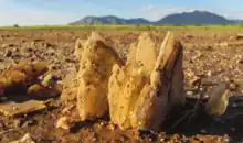 Lake Lucero is a playa located within that section of the Tularosa Basin that is contained within White Sands National Park in the U.S. state of New Mexico. The playa is noted for the unusually high quantity of water-deposited and wind-deposited gypsum dissolved in its intermittent waters. Annual evaporation cycles have caused much of the gypsum to precipitate into crystals of impure, brownish selenite that line the alkaline mudflats of the lakeshore. The further process of gypsum erosion abrades the fragile selenite, and other precipitated gypsum, into the pure-white sands covering most of the national park.[2][3]