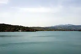 Lake Marathon or the Marathon Reservoir (Greek: Λίμνη Μαραθώνος [Limni Marathónos] or Λίμνη Μαραθώνα [Limni Marathóna]) is a water supply reservoir formed from the construction of Marathon Dam at the junction of Charadros and Varnavas Torrents near the town of Marathon, Greece. It was the primary water supply for Athens from 1931, when it became operational, until 1959. In 1959 water from Lake Yliki became available, and water from Mornos Reservoir became available in 1981.